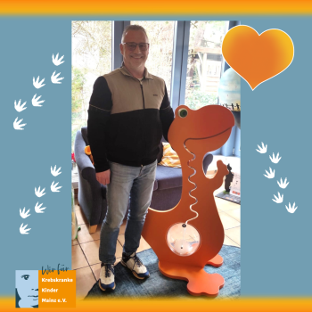 Wir danken Matthias von Herzen, dass er diese weite Strecke auf sich genommen hast, um uns diesen großen Dienst zu erweisen. Wir sind uns sicher, dass unser neuer Dino bei künftigen Benefizaktionen das Highlight für Klein (und ein bisschen auch für Groß) sein wird.🧡