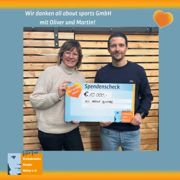 Für dieses sportliche und großherzige Engagement danken wir Oliver und Martin von all about sports GmbH sowie allen Unterstützern von ganzem Herzen. Jeder Euro hilft uns, zu helfen. Dass es gleich so viele davon sind, macht uns sprachlos und sehr, sehr dankbar.