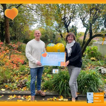 Als Flemming Mendau von Kieser Mainz von unserer Aktion „Mainz trägt Gold“ erfuhr, zögerten er und sein Team nicht lange; sie riefen eine Spendenaktion für den Elternverein ins Leben. Nicht nur, dass das Team Kieser im September die goldene Schleife trug – Flemming versprach, eine Woche im September registriertem Besuch seiner Mitglieder 1,00€ an den Elternverein zu spenden. Sehr viele Menschen folgten diesem Aufruf und so konnte Flemming Mendau bei seinem Besuch im Elternhaus die stolze Summe von € 2.000,00 an Andrea Grimme überreichen, die sich sehr über diese großartige Spende freute.