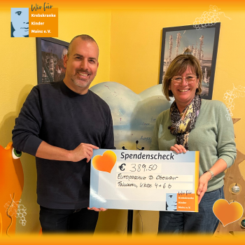 Ende Oktober erreichte uns eine liebe Nachricht aus der Dr. Obermayr Europaschule Taunusstein. Denn: In gleich zwei Klassen gab es einen Überschuss in der Klassenkasse. Was tun damit? Statt das Geld an alle zurückzugeben, einigten sich die Schüler:innen mit ihren Lehrkräften darauf, das Geld an Krebskranke Kinder Mainz e.V. zu spenden. Und so erhielten wir die supertolle Summe von € 389,50, über die sich Kai Leimig und Andrea Grimme riesig freuen.