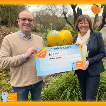 Markus Keßler feierte in diesem November einen runden Geburtstag. Er wünschte sich anlässlich dieses Geburtstages keine Geschenke, sondern vielmehr eine Spende für Krebskranke Kinder Mainz e.V.. Nachdem er den Elternverein durch seinen Besuch im Elternhaus kennengelernt hatte und er viele Details über dessen Arbeit und Angebote erfuhr, konnte er dies an seine Gäste weitergeben. Sie dankten ihm sein Engagement mit vielen Spenden und einer wunderschönen Feier. In dieser Woche nun besuchte Markus erneut das Elternhaus, um dort die gesammelten Spenden an Andrea Grimme zu übergeben. Markus selbst stockte die Sammlung noch großzügig auf und der Elternverein darf sich über stolze € 2.000,00 freuen.