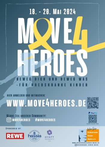 Wenn sich viele Menschen selbst mit einem kleinen Beitrag zusammentun, dann kann etwas ganz Großes daraus werden. Macht mit beim **Move4Heroes - beweg Dich und beweg was für krebskranke Kinder **an Pfingsten vom 18. - 20.05.2024! Anmeldungen unter: www.move4heroes.com